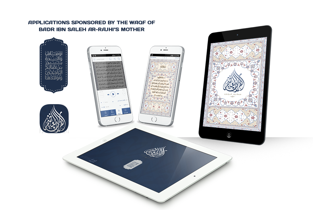 The Great Quran Application is introduced under a generous sponsorship of the Waqf of Badr Ibn Saleh Ar-Rajhi’s mother and her sons. The Application is designed and developed by Arabia for Information Technology – a leading company in the industry of Islamic programs and applications. It is a full-featured application which enables interactive reading with the text of the Electronic Mushaf, listening to various recitations, studying the Great Quran and memorizing it easily. It is the first Qur’an Uthmani script application to be accredited by the Mushaf Committee of Al-Azhar Ash-Sharif under the supervision of a specialized scientific committee licensed under the Ten Recitations.